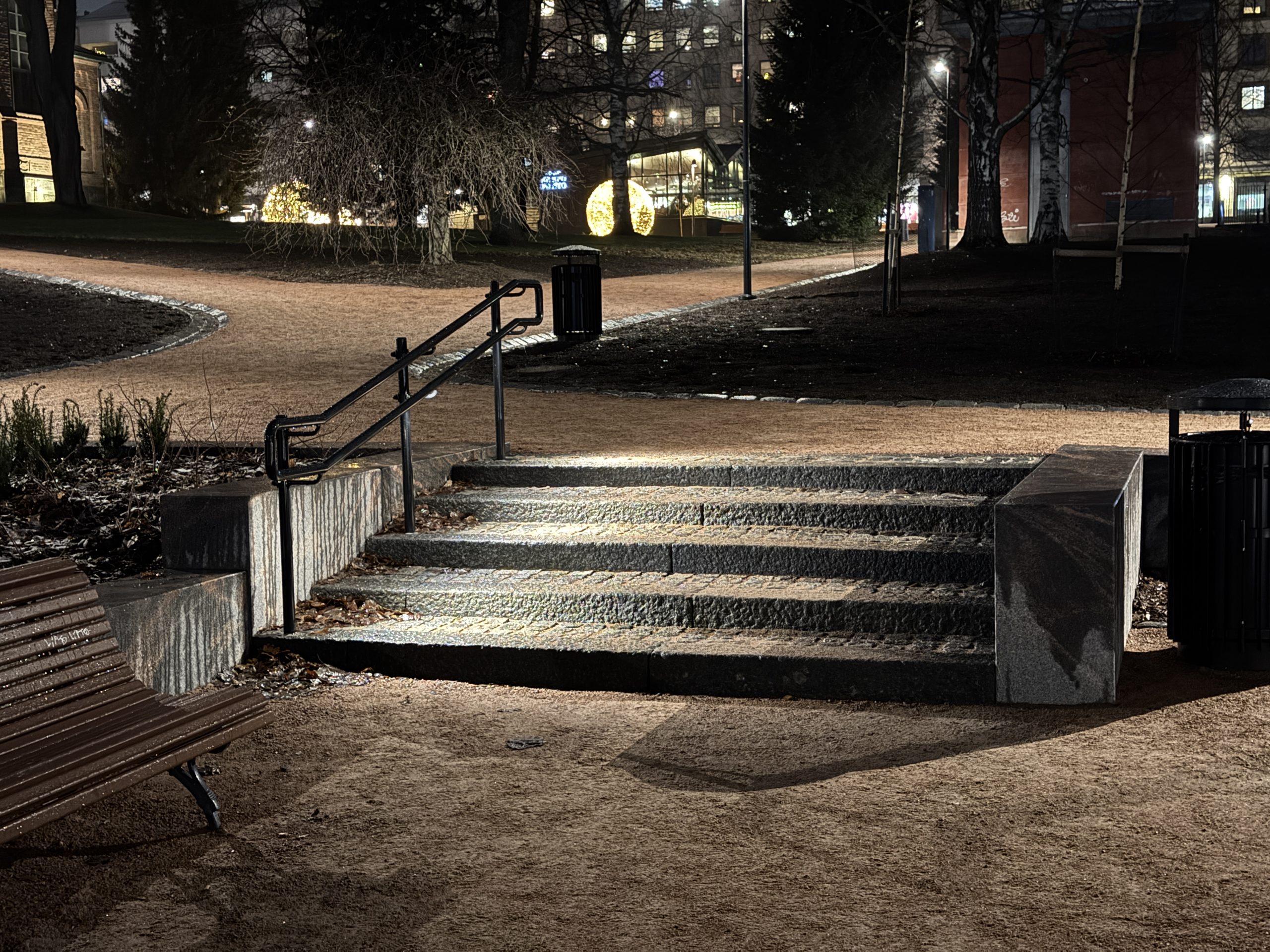 Kirkkopuistoon on toteutettu valaistusratkaisut. Kohteessa on käytetty Meyer Lighting Monospot 3 -valaisimia street-optiikalla ja Zhaga Book 18 -liittimellä. Portaat valaistaan Meyer Lighting Nanodot -kaidevalaisimilla, jotka parantavat näkyvyyttä ja turvallisuutta.