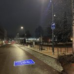 Lisäksi liikennemerkkejä ja leikkipuiston kuvia projisoidaan Meyer Lighting Monospot Gobo -valaisimella.